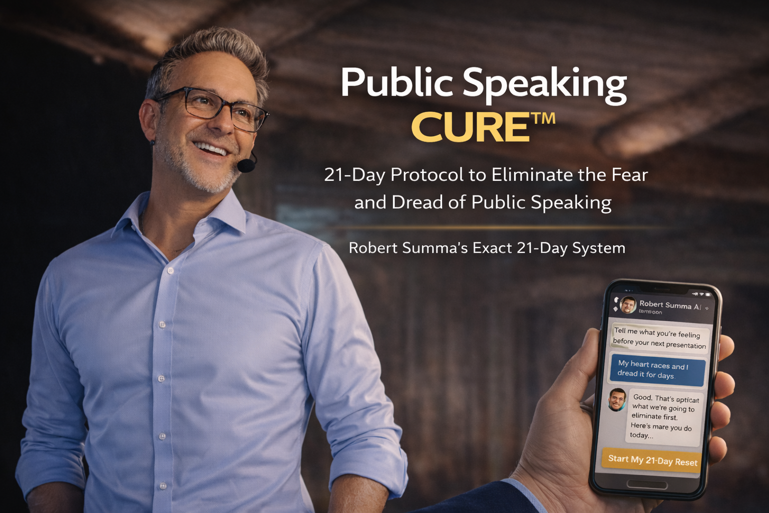 Your structured 21-day prescription for eliminating public-speaking fear - with a (optional) private calibration session with Robert Summa.
